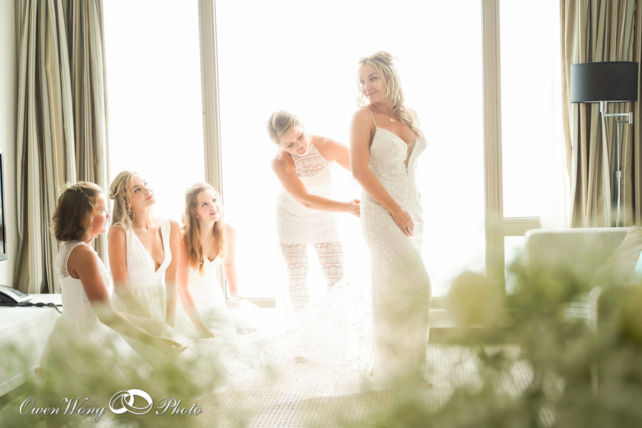Bridesmaids not only help Katie to wear the wedding dress, also send their heartfelt and sincere wishes