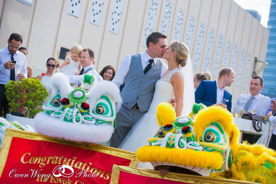 The Bride Georgina, a photographer as well, brought in a new concept of contemporary wedding with her passion for Chinese culture and art. Western meets Eastern, that’s why China Club was selected. Have you ever thought of a lion dance in a wedding ceremony inside hotel too? Georgina & Scott actualized such a new attempt and made the day very relaxing and enjoyable. Unlike typical itinerary, Scott and groomsmen were not in a hurry but went to get a drink in the Morning. Such enjoyment was truly enviable. Another VIP was their lovely daughter. Whenever they held her in their arms, a sweet couple photo turned ever special because of family warmth.
