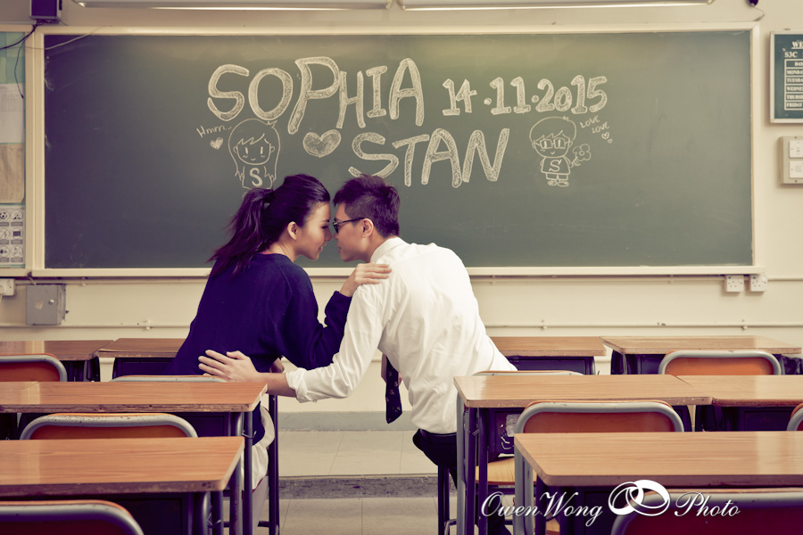 Sophia 和 Stan 由讀中學開始認識,故重返校園拍攝他們的戀愛故事,Sophia 有model 般的身高,但穿校服時像學生般纯撲,穿起婚纱和晚裝則非常高貴動人。