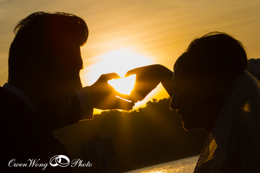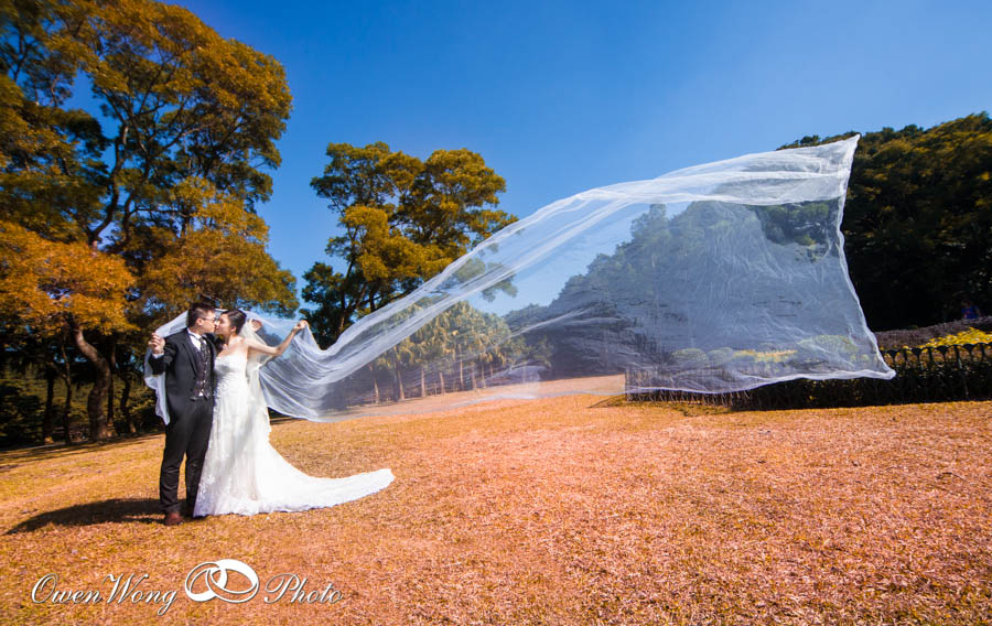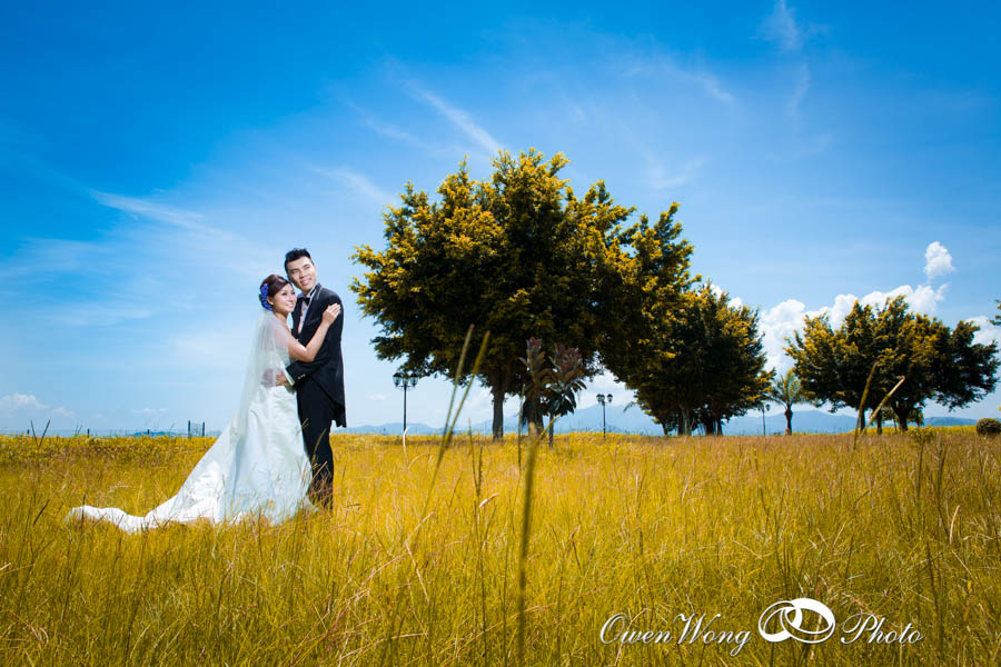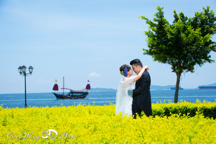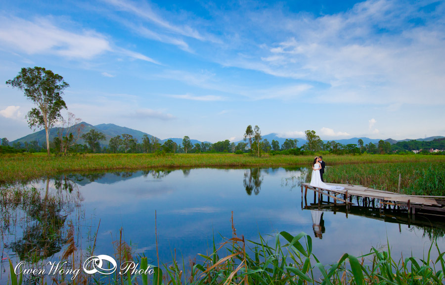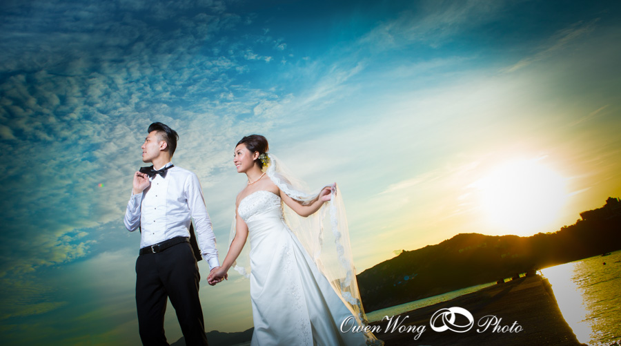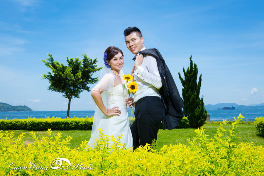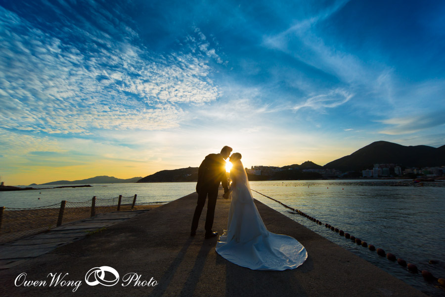 Janice 和 Cyrus的 pre wedding 在三十三度的高温下拍攝, 但天空很蔚藍, 黄昏的天空雲霞亦醉人,其實在香港映的pre wedding 景色一樣可以很美, 並非一定要往海外尋.