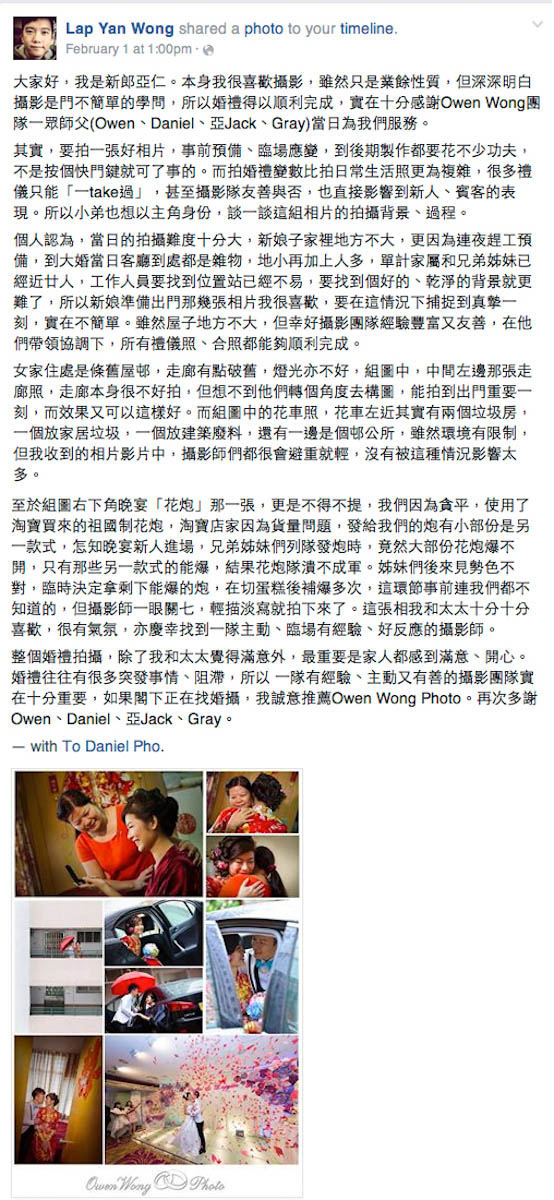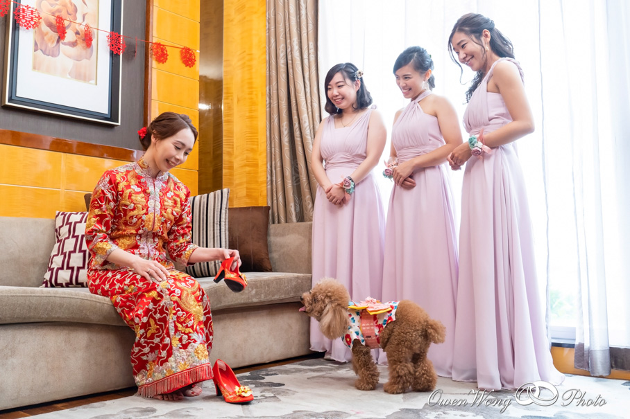 Veronica 和 Edward 兩個都是愛狗人仕,早上在女家(酒店),及男家都各有一隻可愛的小狗。牠們都像是知道是主人的大日子,非常雀躍和開心