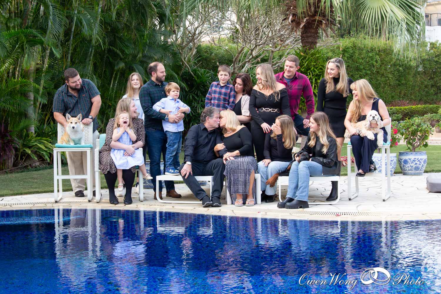 Recently, I did a family photo shoot for Katie’s family. The photo was taken at her detached house in Discovery Bay. There was a small swimming pool, flowers and trees as the background, and the weather was pleasant that day. The shooting process was full of joy and Happiness